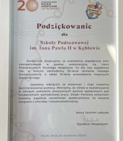 Dziękujemy za współpracę z Puckim Hospicjum naszym Wolontariuszom Jana Pawła II Otwarta Dłoń ❤️❤️