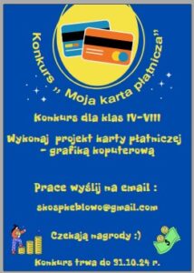 Prace składamy do wychowawców. - dla klas IV-VIII ,, Moja karta płatnicza – grafika komputerowa- projekt”;