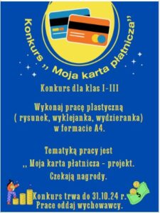 - dla klas I-III ,, Moja karta płatnicza- konkurs plastyczny – projekt”