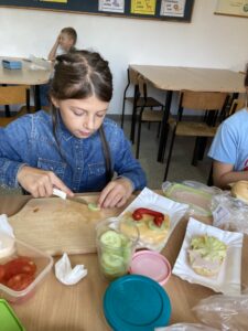 W drugiej połowie września i na początku października na zajęciach języka kaszubskiego uczniowie przygotowywali zdrowe i ulubione kanapki. Rodzice przygotowali dzieciom wszystkie potrzebne składniki i na lekcji zrobili pyszne kanapki, które z apetytem zjedli. Przypomnieli sobie również kaszubskie nazwy związane z kanapkami.