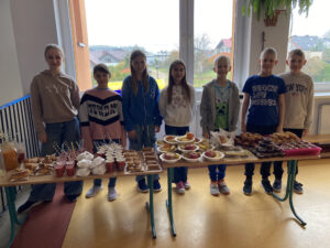 W dniach 29-31 listopada uczniowie uczęszczający na lekcje języka kaszubskiego w ramach organizowanego w naszej szkole Zdrowego Czwartku sprzedawali przekąski przygotowane przez ich rodziców. Bardzo dziękujemy Rodzicom za trud, wysiłek i pomysłowość w przygotowaniu kolorowego i ciekawego stołu sprzedażowego.