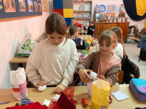 Celem zajęć było rozwijanie aktywności twórczej, a także kształtowanie warsztatu pracy poprzez poznawanie nowych technik, form plastycznych i technicznych. Twórcza praca sprawiła dzieciom dużo przyjemności i uśmiechu, a efekt końcowy wykonywanych prac dał ogromną satysfakcję.